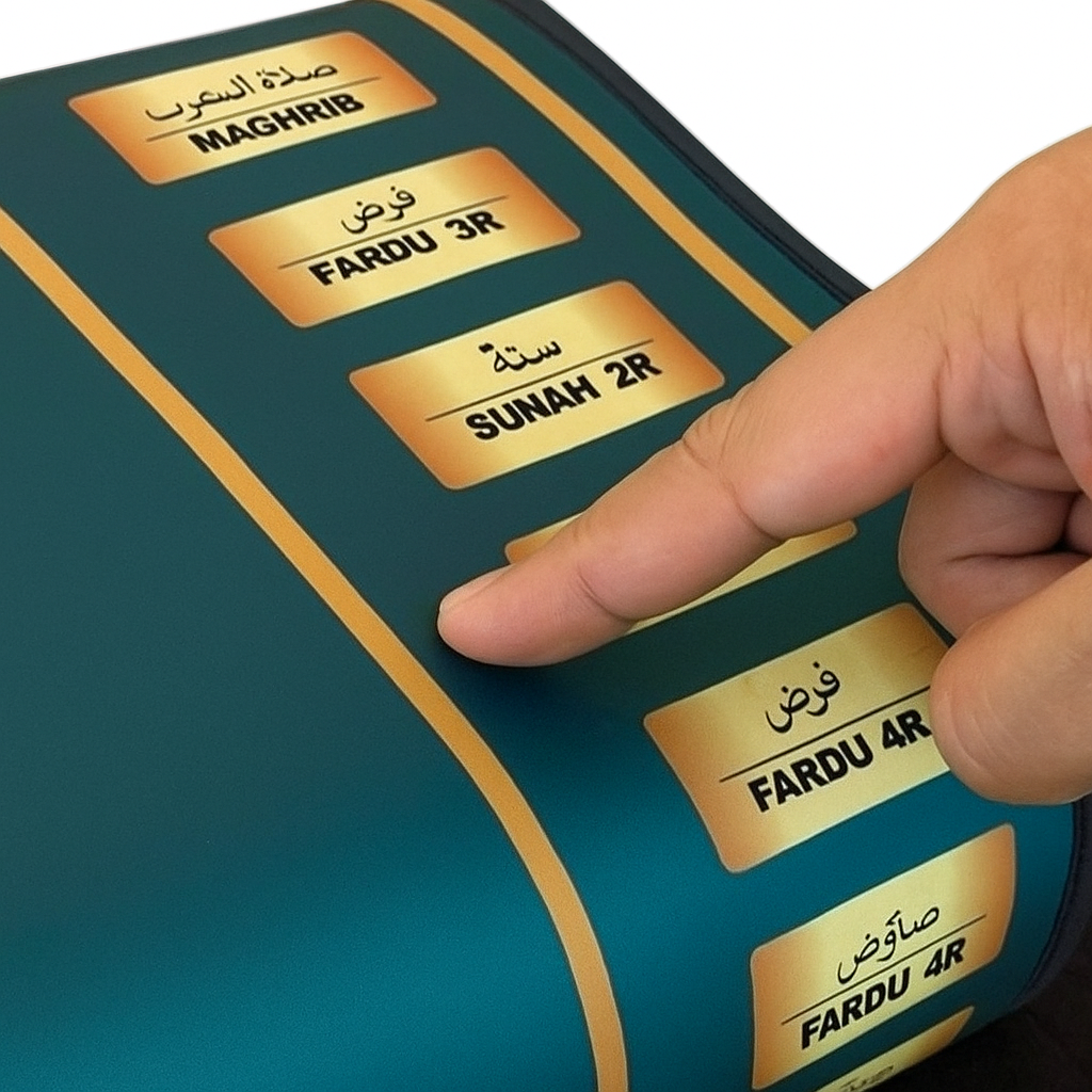 Our interactive prayer rug makes it simple: with step-by-step audio guidance in multiple languages, clear recitations, and a durable, travel-ready design, you’ll feel confident and supported wherever you pray.