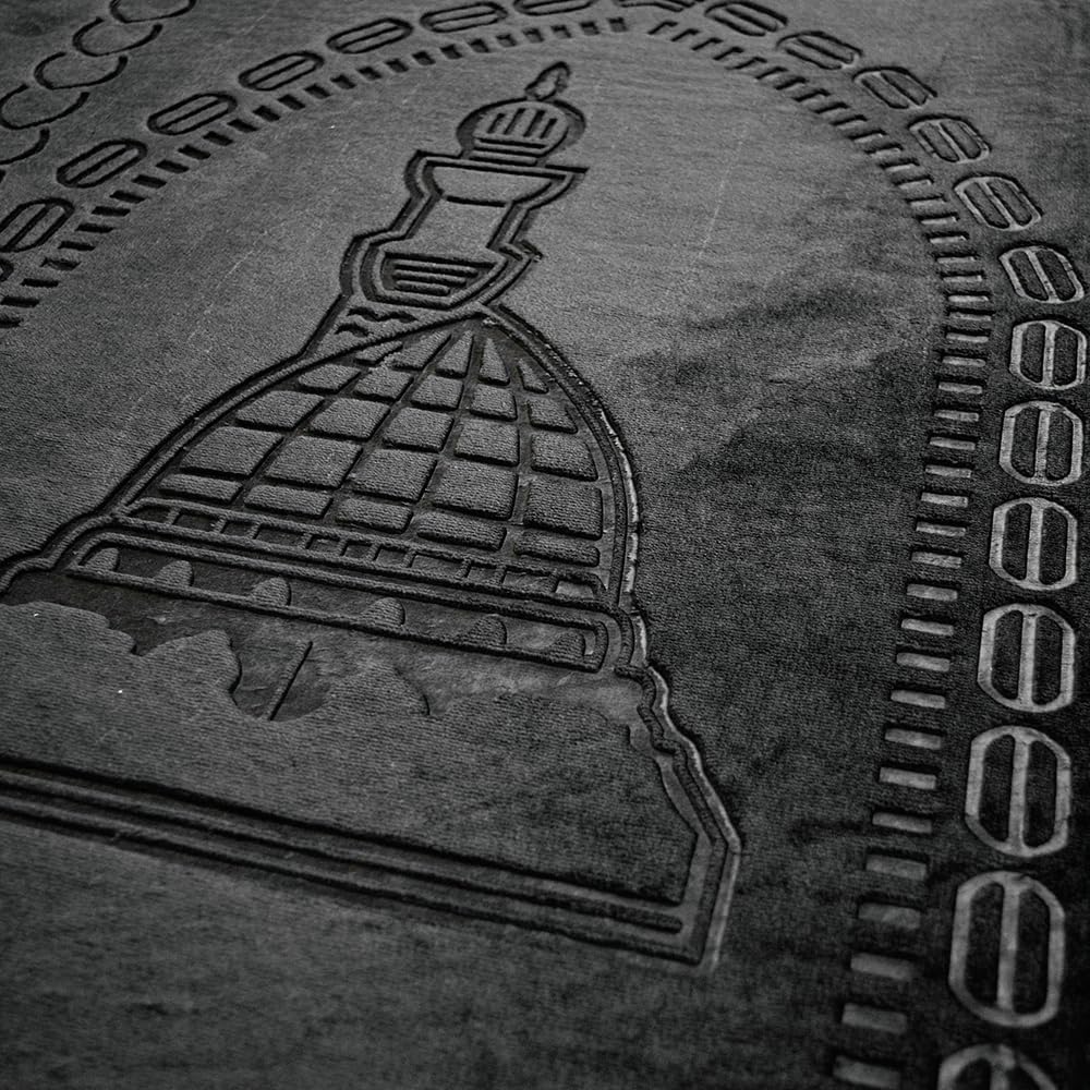 Thicker and heavier than typical prayer rugs, this mat offers a cushioned surface that enhances comfort during sujood and long sessions of prayer. While slightly less padded than our deluxe version, it remains significantly thicker than most velvet prayer rugs available today.