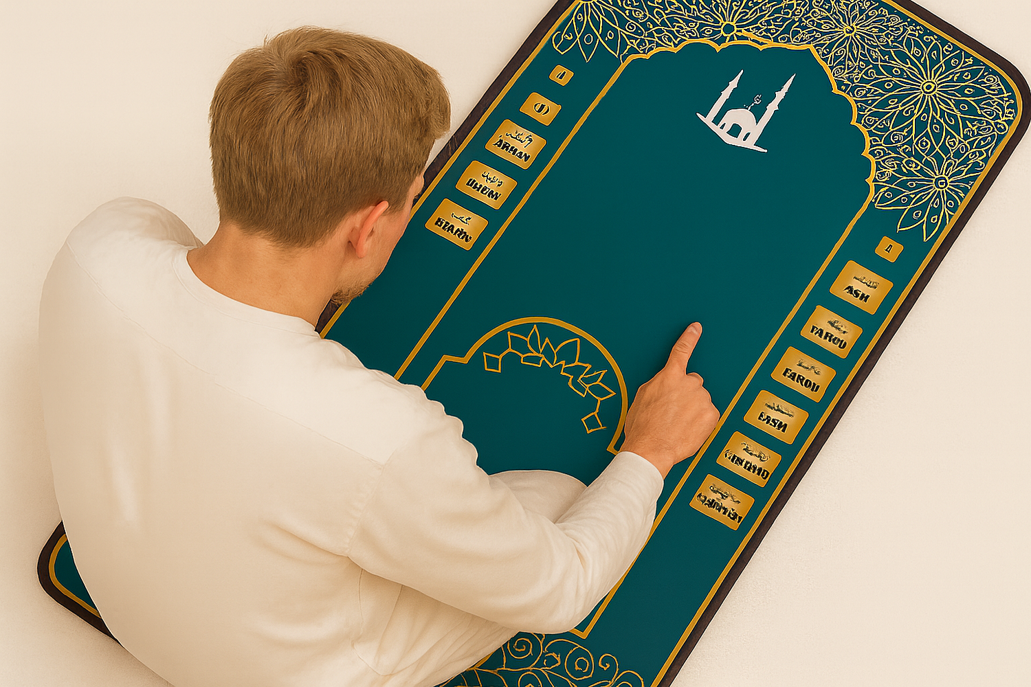 Our interactive prayer rug makes it simple: with step-by-step audio guidance in multiple languages, clear recitations, and a durable, travel-ready design, you’ll feel confident and supported wherever you pray.